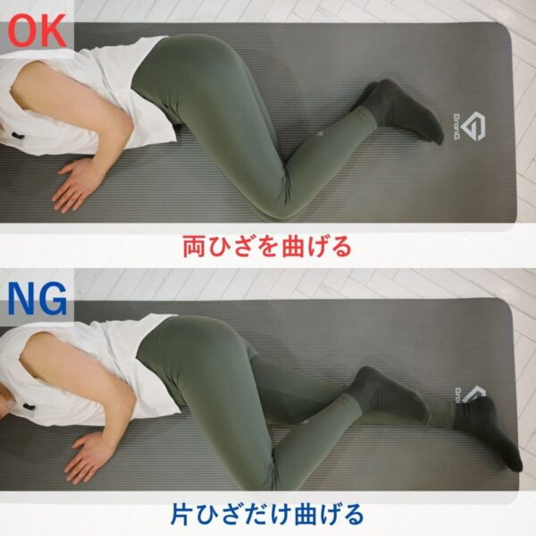 - 横向きになり、ひざを90度に曲げて重ねる