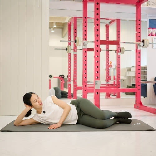 クラムシェルは高い負荷をかけて鍛えるというより、回数を重ねながらじわっと刺激を入れていくエクササイズです。中殿筋や小殿筋は大殿筋のように大きく筋肥大する筋肉ではないため、重さを増やすよりも回数を増やして動かすことを意識するとよいでしょう。