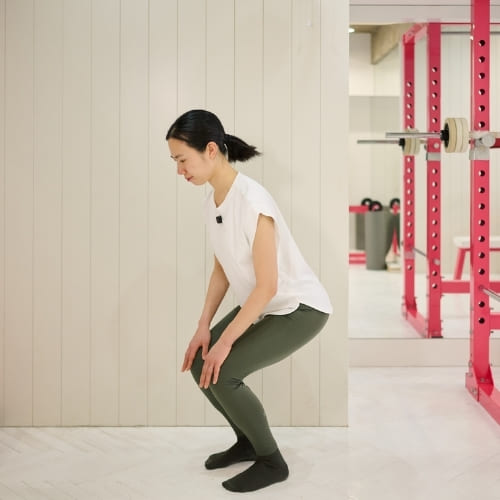 - 腰を後ろへ引くようにゆっくり下げる