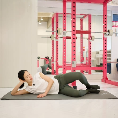 クラムシェルは、横向きでひざを開閉するシンプルな動きで、お尻の横側にある中殿筋や小殿筋を狙いやすいトレーニング。