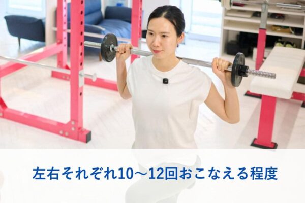 回数の基本は10〜12回程度だが、目的によって調整する方法もおすすめ。筋肥大を狙うなら左右8〜12回を2〜3セット・運動習慣づくりが目的なら左右6〜10回を3〜5セットから始めよう。