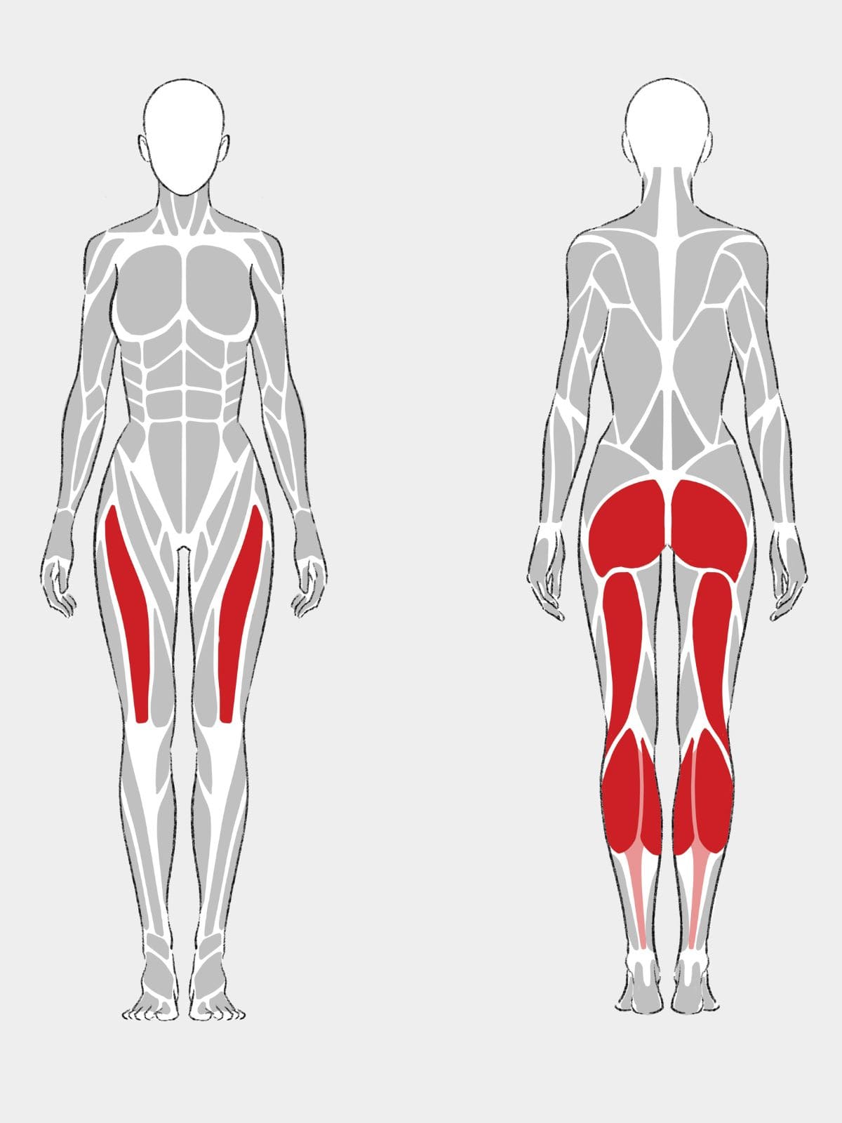 ふくらはぎは足首を支える筋肉で、バックランジでは補助的に働く。前脚でバランスを取りながら身体を支えるため、足首まわりの安定に関与しやすい。