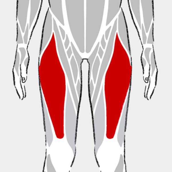 大腿四頭筋は太ももの前側にある大きな筋肉で、ひざを伸ばす動きに強く関わる。バックランジでは、下がった姿勢から立ち上がるときに刺激が入りやすい。