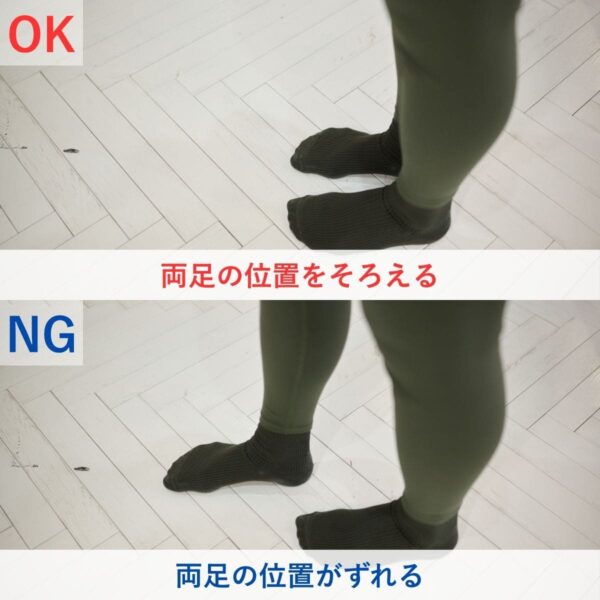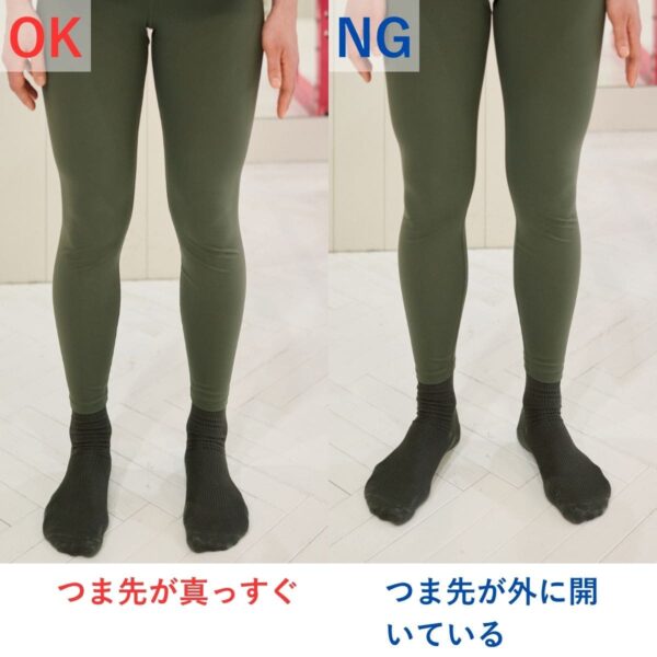 STEP1:つま先を正面に向け、足幅は骨盤の広さにする