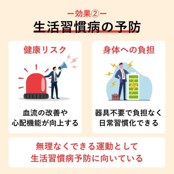 特別な器具を使わず、「歩く」という日常動作の中で無理なく血管や数値をケアできる点が、生活習慣病予防に向いている理由といえる。