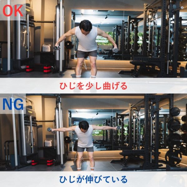 そのため、リアレイズでは重量を追い求めるよりも、軽めの負荷でていねいに動作をおこなうことが大切です。