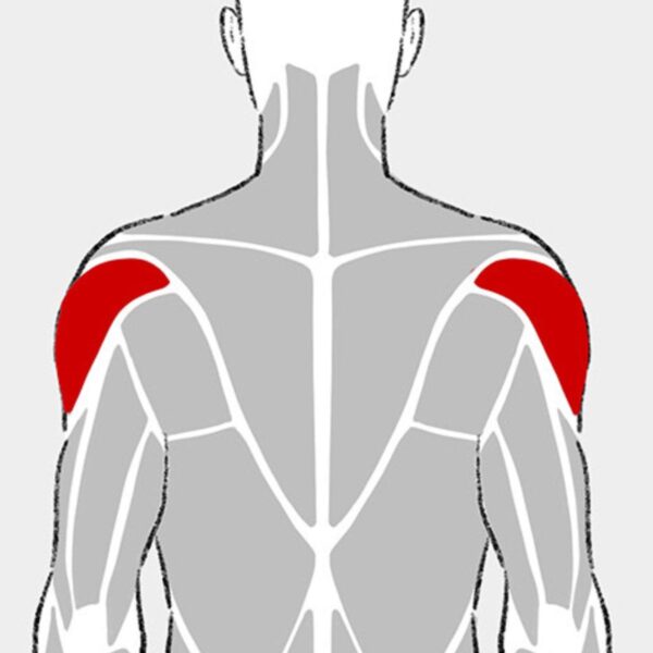 三角筋後部は肩の後ろ側に位置する筋肉で、腕を後ろへ引く・外側へ広げる動作に関わる部位。リアレイズでは腕を横に広げる動きによって、この三角筋後部に刺激が入りやすくなる。