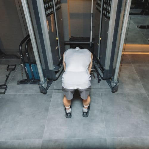 可動域が狭くなる原因として多いのは、重量が重すぎる、肩をすくめるフォーム、肩甲骨の動きが固いといった要素です。対策としては、まず重量を落として10〜15回をフォーム優先で反復することが基本になります。