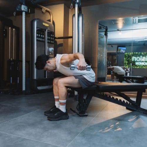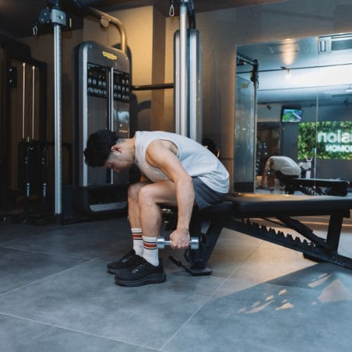 筋肥大を狙う場合は、ショルダープレスやサイドレイズなどのメイン種目を先におこない、その後にリアレイズで三角筋後部を仕上げる流れが組みやすいです。