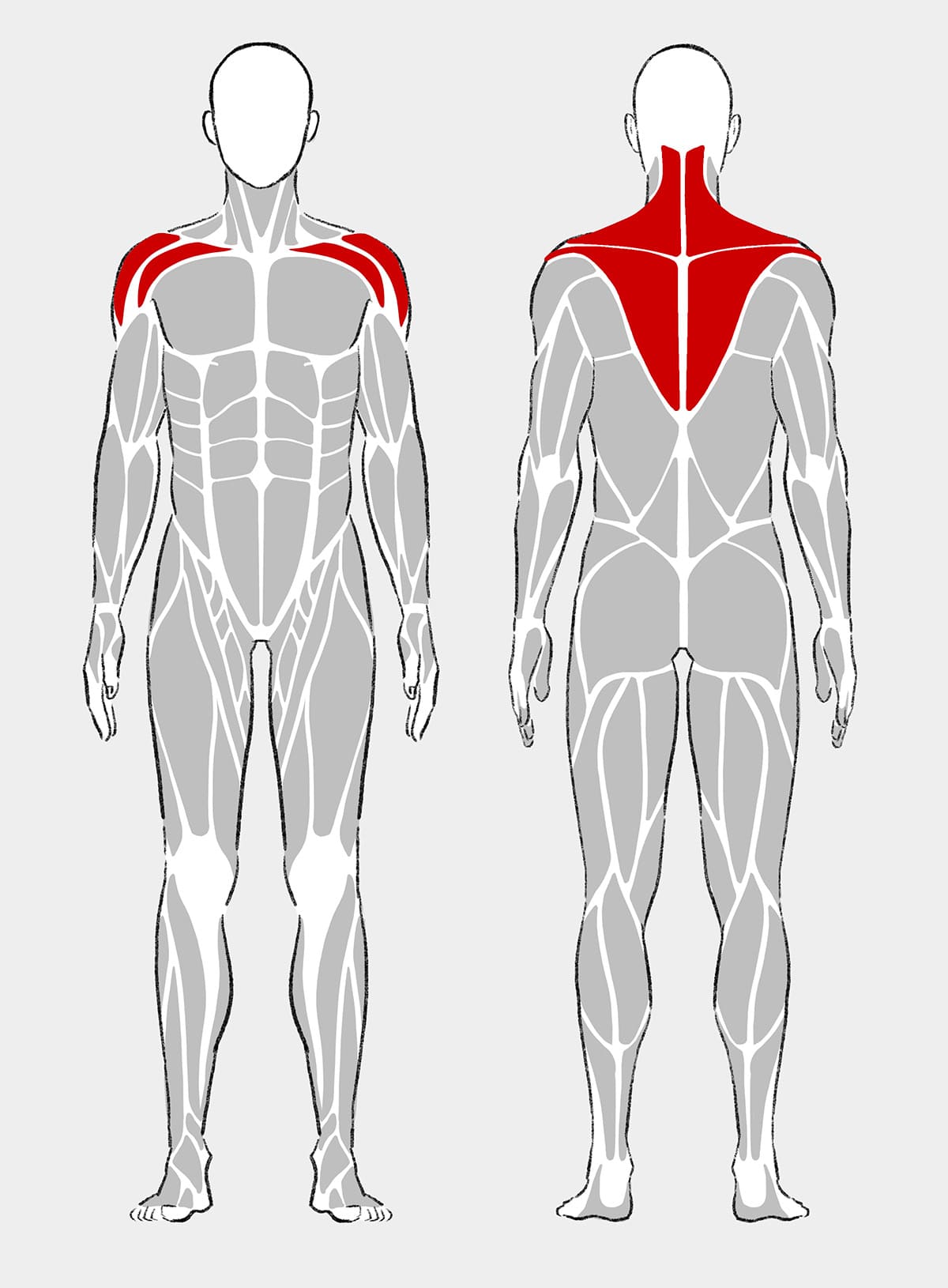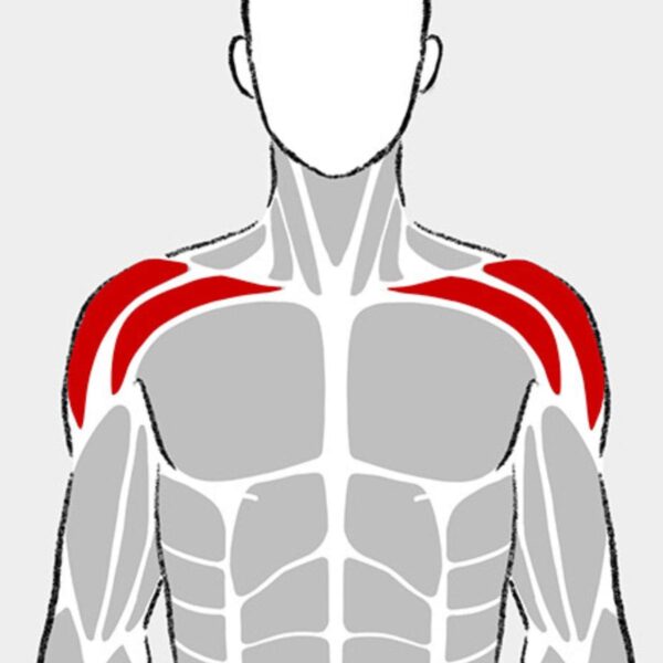 僧帽筋は肩甲骨まわりを支える筋肉で、ダンベルショルダープレスでは補助筋として関与する。押し上げる際に肩甲骨が不安定になると、僧帽筋が強く働いてバランスを取ろうとしやすい。