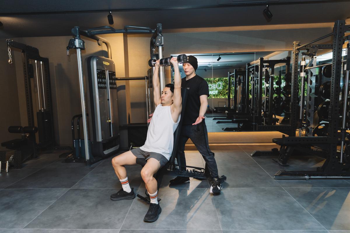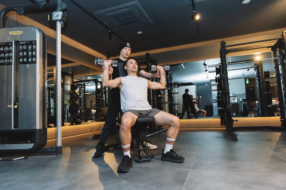 ダンベルは片側ずつ肩を動かすため、左右の出力差や安定性の弱点が表に出やすく補正のきっかけをつくりやすい。可動域を取りやすく、ひじや手首の角度調整もしやすいので、肩に合わせたフォームをつくりやすい。