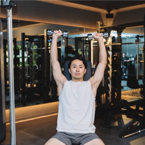 - ダンベルを頭上へ押しあげる