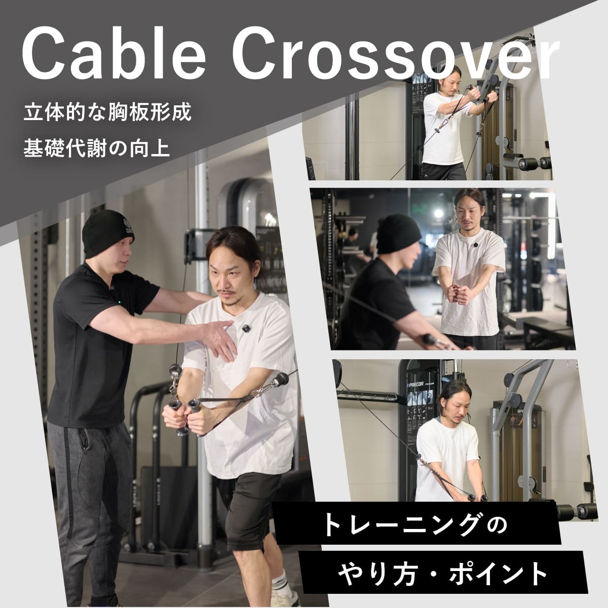 ケーブルクロスオーバーは、胸の見た目や機能向上に効果的な種目。特に、動作中に負荷が抜けにくい特徴があるため、筋肉をしっかり収縮させるトレーニングとして活用しやすい。