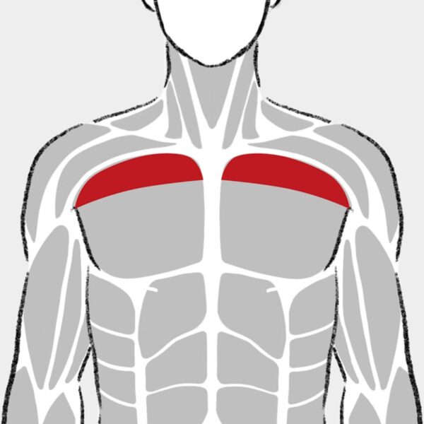 大胸筋上部は鎖骨付近に位置する筋肉。ケーブルクロスオーバーでは、下から上に引き上げる軌道で動作することで、上部に刺激を入れやすくなる。