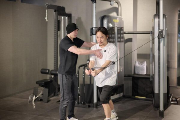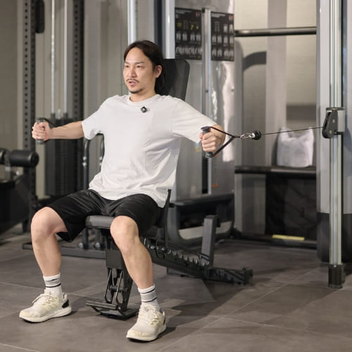 スタート時に胸の力を抜いてしまうと、そのまま腕で引いてしまい、効きにくく感じました。最初から胸に力を入れておくことで、動作中も意識しやすくなりました。