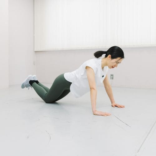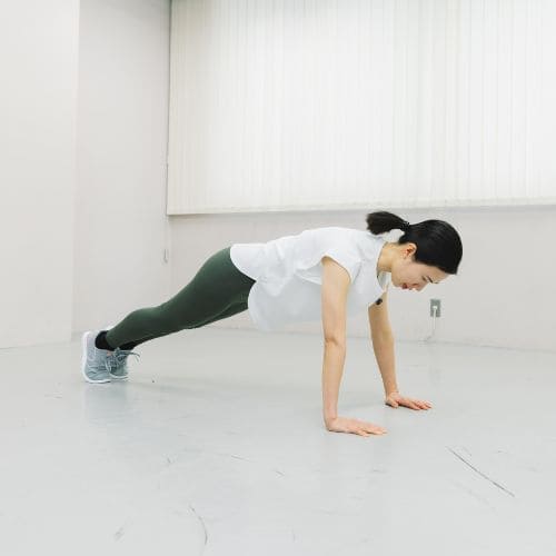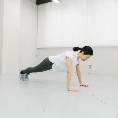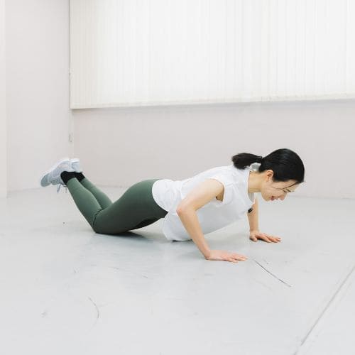 もし負荷が軽く感じる場合は、つま先を立てて足を伸ばし、通常の腕立て伏せに近い形にすると強度を高められます。