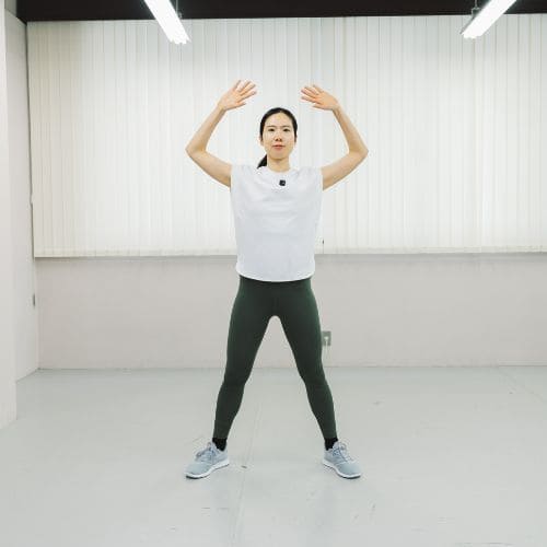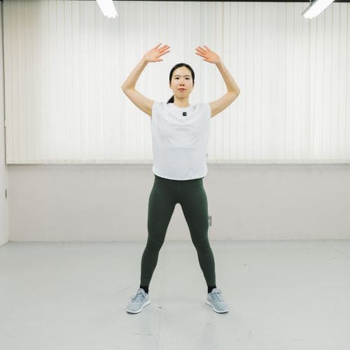 ジャンピングジャックは、ジャンプ動作と腕の動きを同時におこなう全身運動です。下半身だけでなく肩まわりも動かすため、心拍数を上げながら全身をバランスよく動かすことができます。