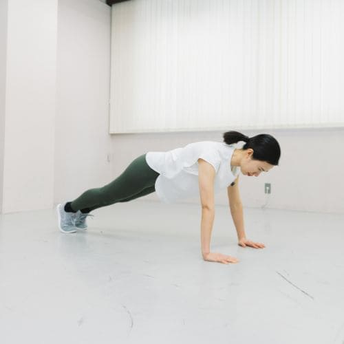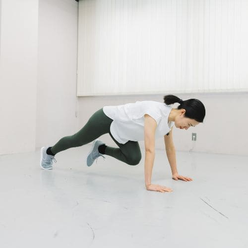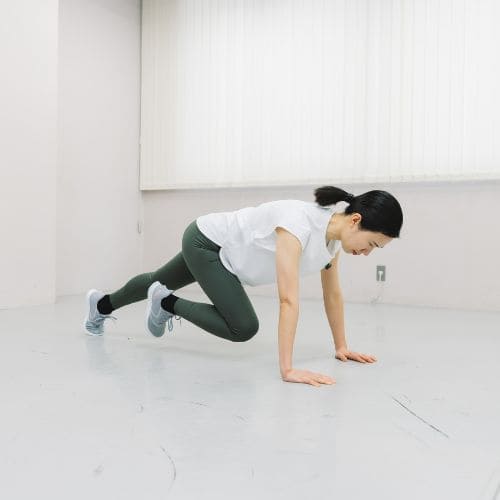 マウンテンクライマーは腕立て伏せの姿勢を保ちながら脚を動かすため、腹筋や体幹に加えて、心拍数も上がりやすい全身運動です。