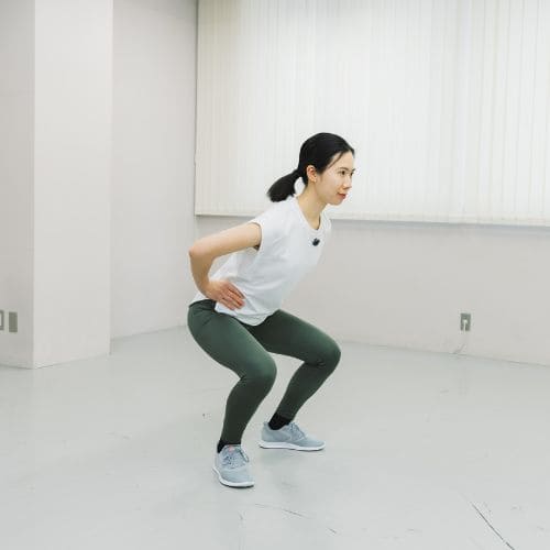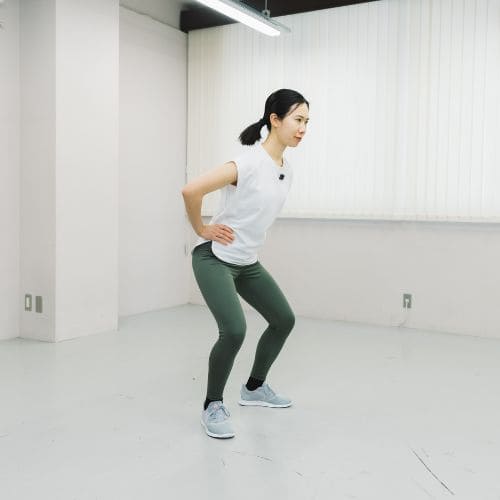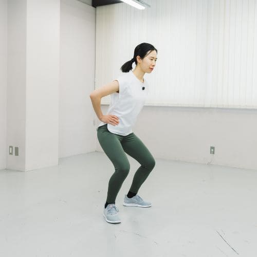 また、浅い位置で動くと負荷が軽く感じますが、太ももが床と平行に近づくくらいまで深くしゃがむと、太ももやお尻にしっかり刺激が入りやすくなりました。