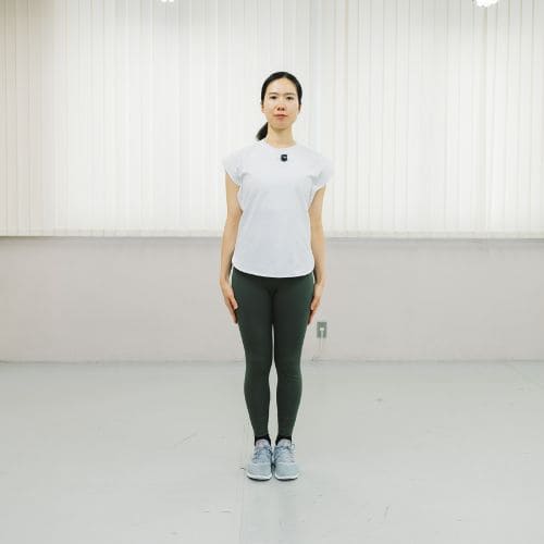 足幅を拳1個分ほど広げ、ひざをやや外に向けるイメージを持つと股関節が動かしやすくなり、スムーズに脚を上げやすくなります。