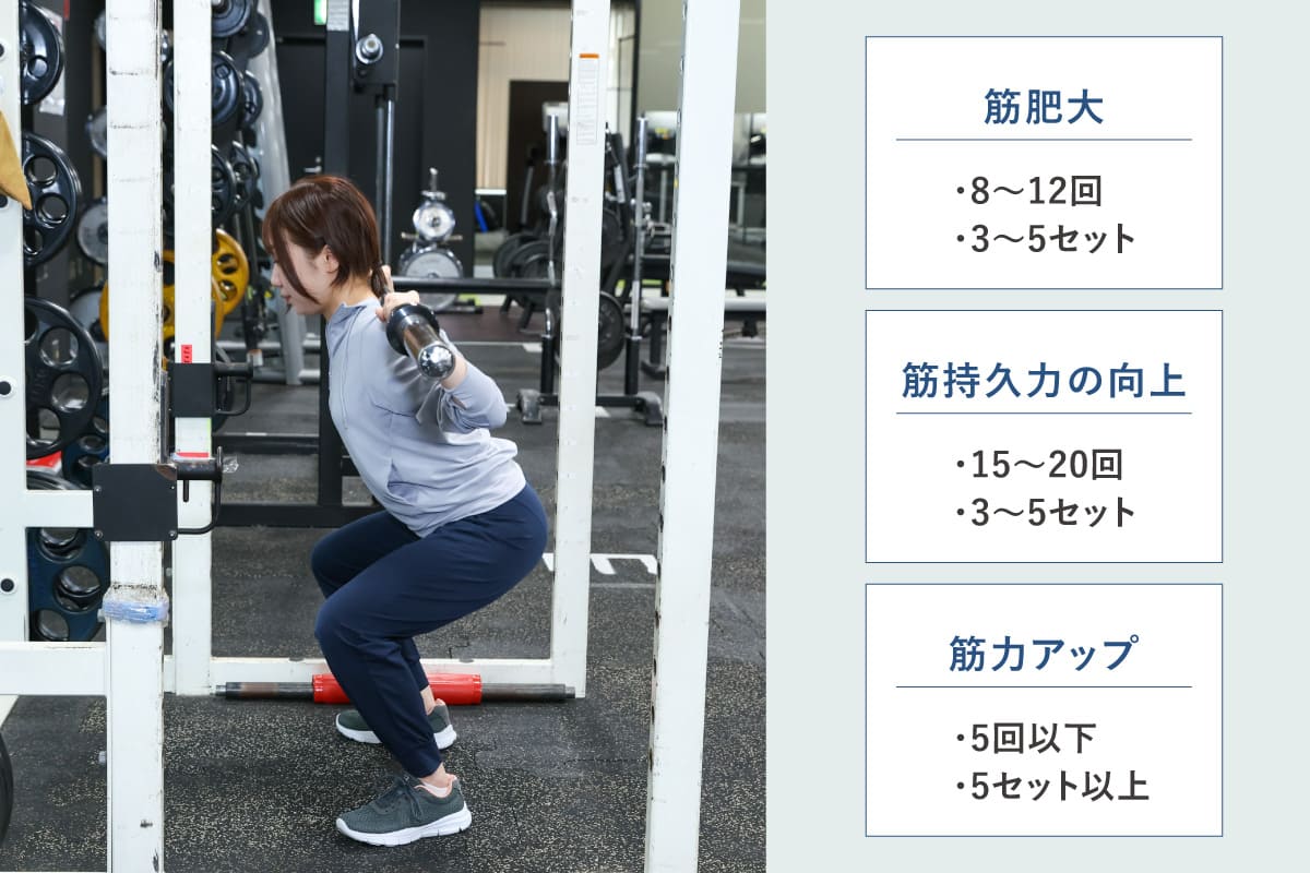 筋トレの最適な回数やセット数は目的によって異なる。