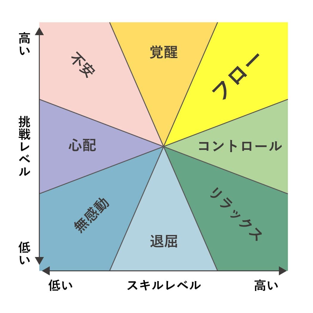 一般的には、自身のスキルレベルとタスクの難易度のバランスが取れている状態がフローに入りやすいとされている。