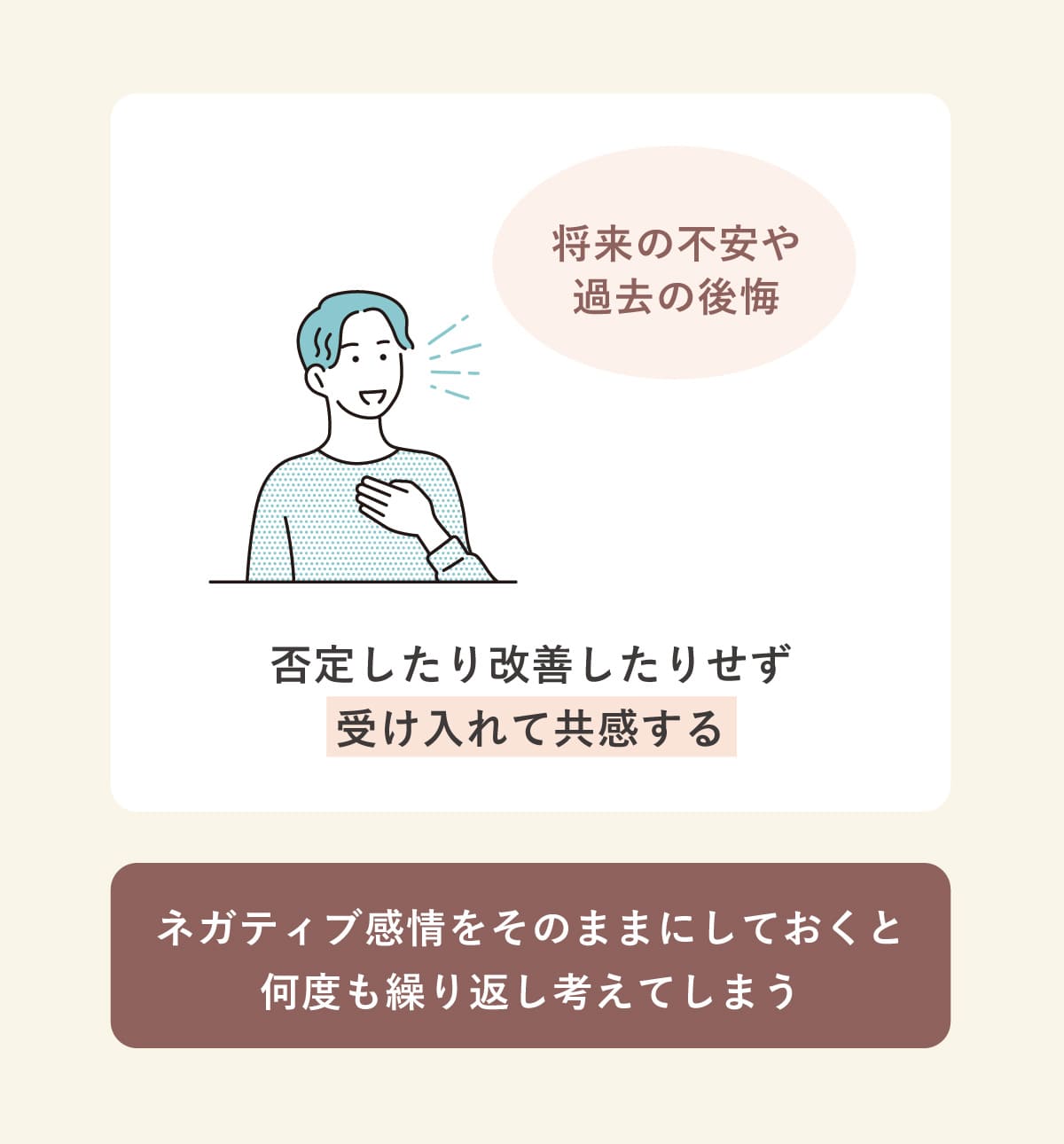 このときに重要なのは、感情を否定したり、すぐに改善しようとしないことである。まずは「そう感じている自分がいる」と認め、共感することから始めよう。