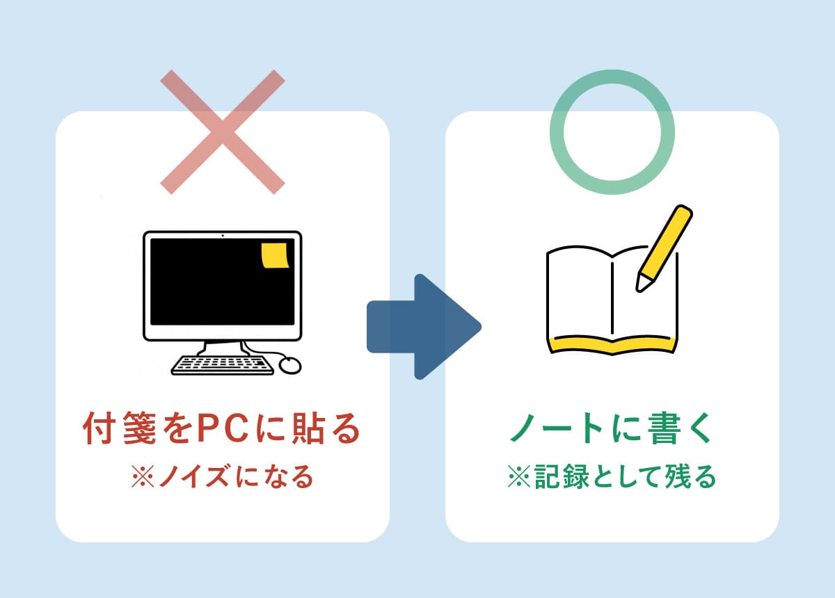 モニターの両脇に付箋を貼っていると、常に視界に入ることで集中力をそぐノイズになりやすい。最初は「やらなきゃ」と思えても、次第にポスターやカレンダーのように風景化し、優先順位を管理しづらくなる。