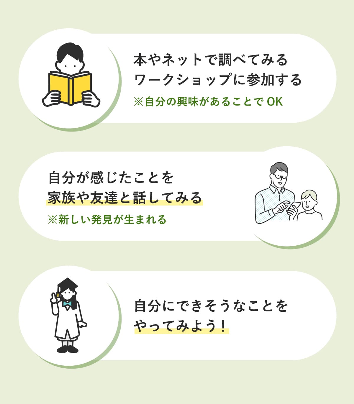- さまざまな意見に触れ、自分なりの考えを持つ