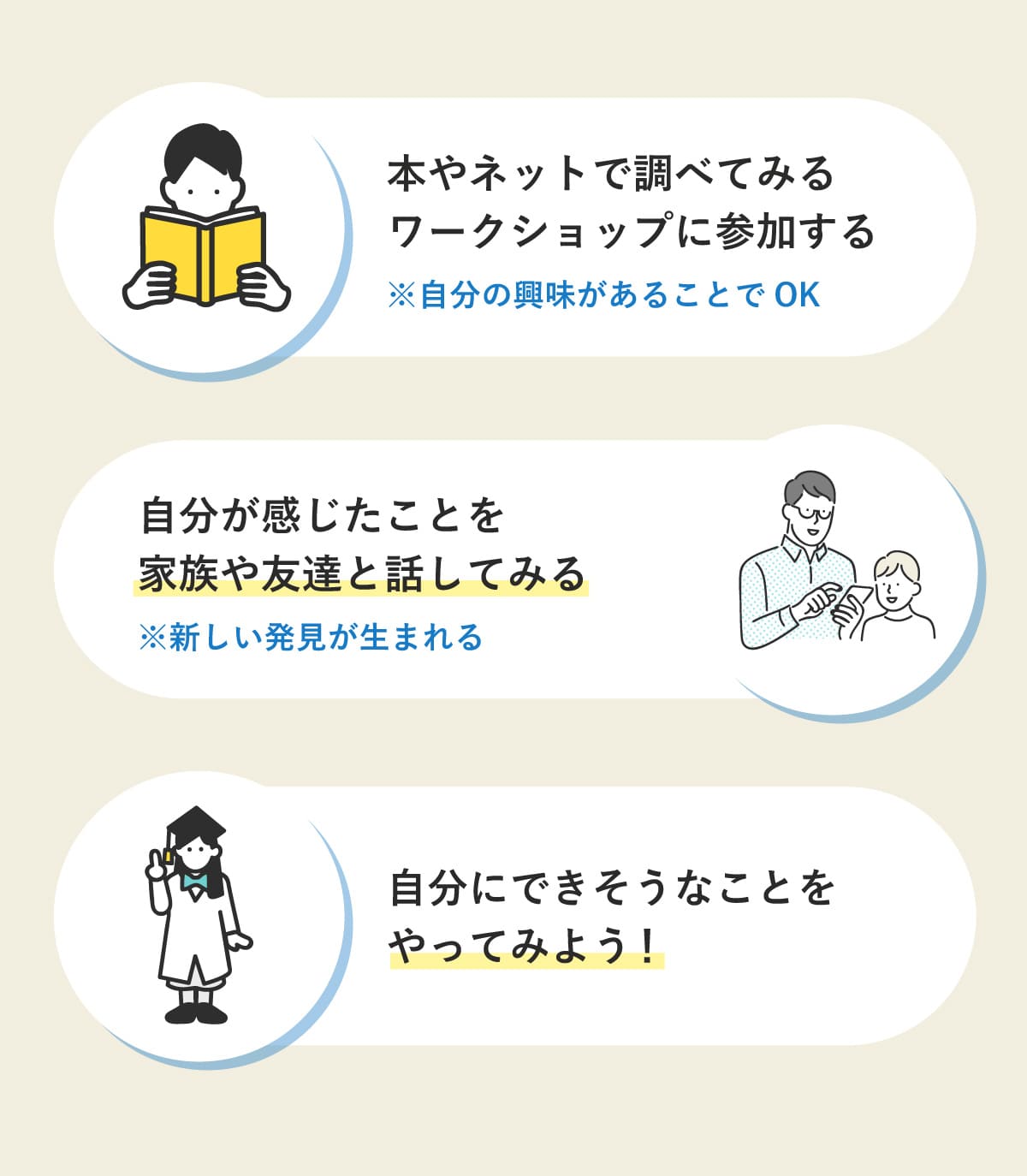 | 交流 | 興味がある社会問題について、家族や友だちと話し合ってみる |