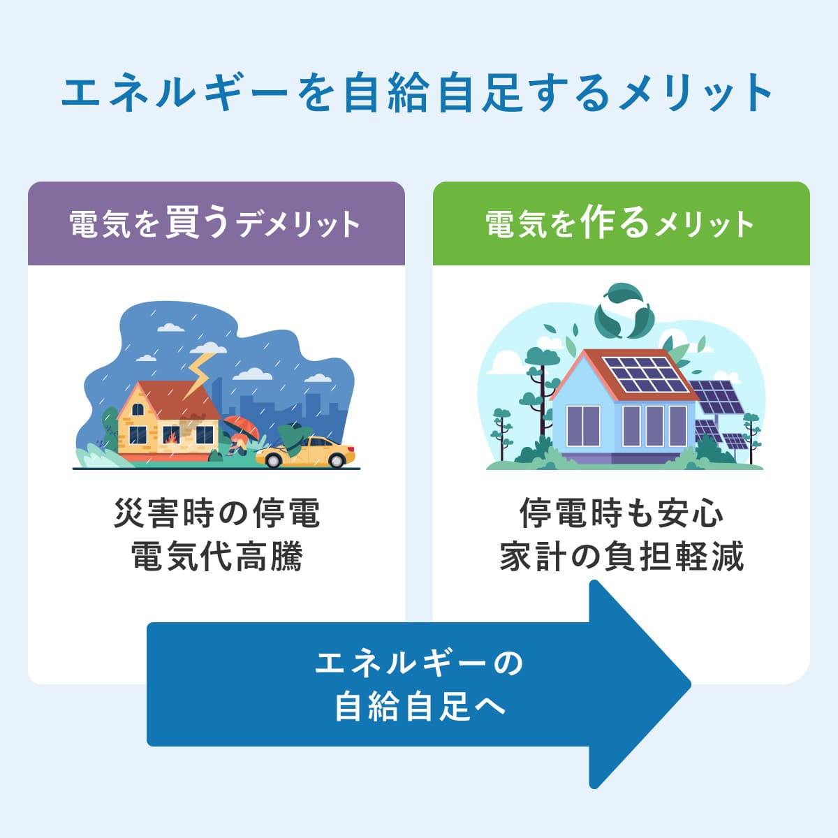 一方で、再生可能な太陽光発電であれば、燃料費ゼロで日本国内で完結する発電になるんです。自宅で発電できれば、外部環境に左右されにくくなります。リスクヘッジのために、太陽光発電を進めていかなければならないと考えています。