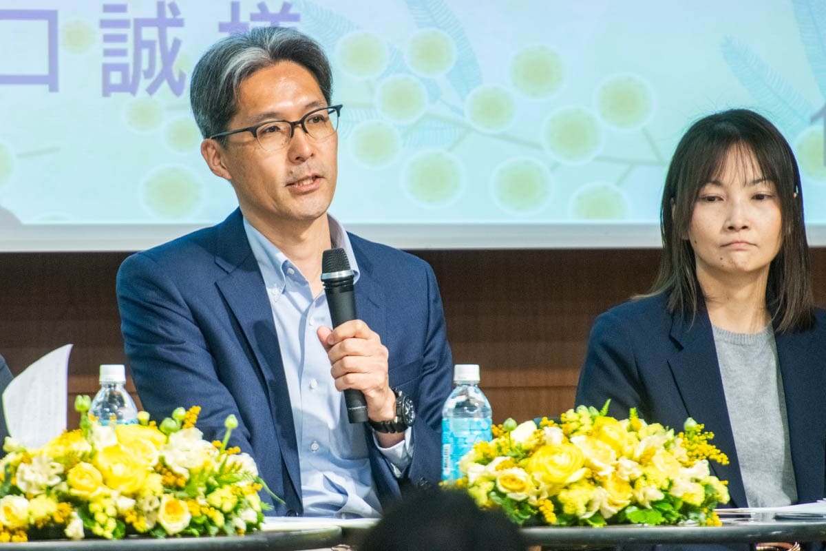 杉浦:三井金属株式会社の杉浦です。セラミックス事業部の大牟田工場で、管理室長として総務・人事・経理を担当しています。約20年前、当工場における現場の女性配置はゼロでしたが、現在は50名ほどの女性が働いています。その取り組みが評価され、2025年には福岡県から男女共同参画社会の表彰を受けました。